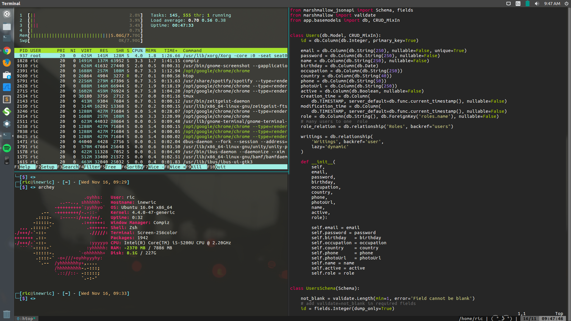 Configuration parameters used on the different linux applications. My personal set up.