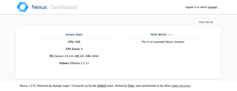 pip install nexus-yplanMake sure you pip uninstall nexus first if you're upgrading from the original to this fork - the packages clash.