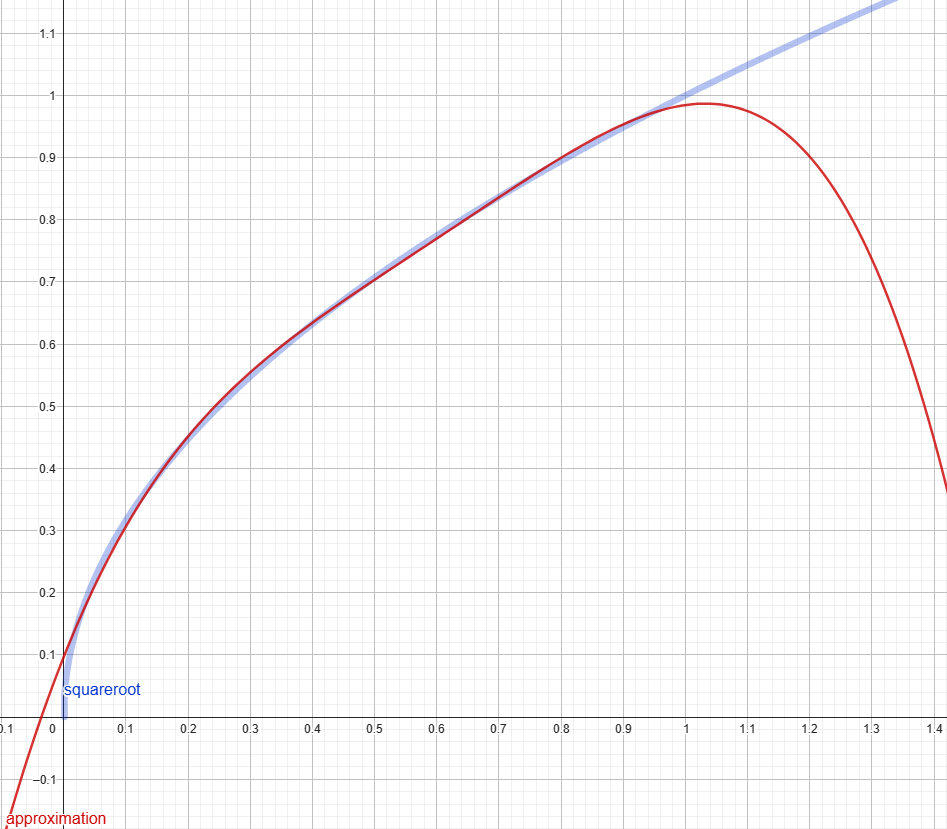 - std::sqrt(x) is approximated using 5 parameters: c0,c1,c2,c3,c4 and multiplication with powers of x