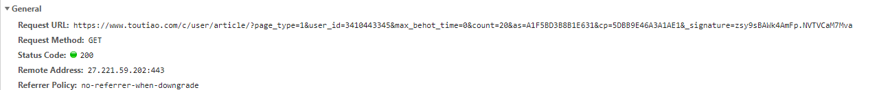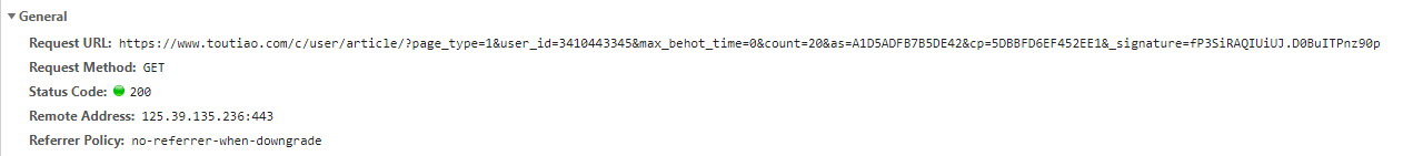 | _signature | 用于判断user_id和max_behot_time的值跟链接和headers的参数的值是否相等 | 是 |